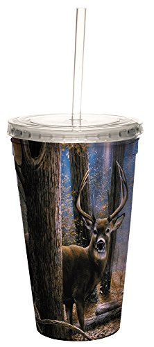 Tree-Free Greetings 35520 Kevin Daniel Woodland Sentry Buck Double-Walled Cool Cup with Reusable Straw, 16-Ounce