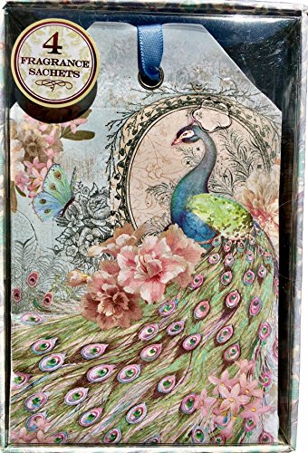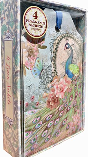 Punch Studio Boxed Set of 4 Linen Fragrance Sachets - Lacy Peacock 65010