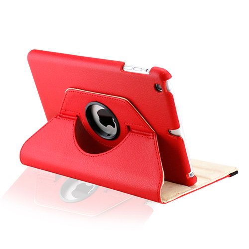 Gearonic 360 Degree Rotating PU Leather Case Cover with Swivel Stand for iPad mini, Red (AV-5133RPUIB)