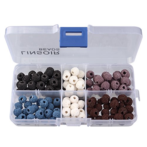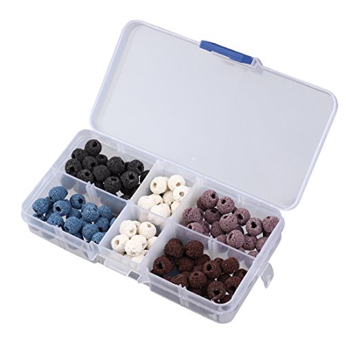 Linsoir Beads 125pcs/box 8mm Round Lava Rock Beads 5 Colors Mixed Natural Stone Beads Diffuser Jewelry Making Pack of 1 Box