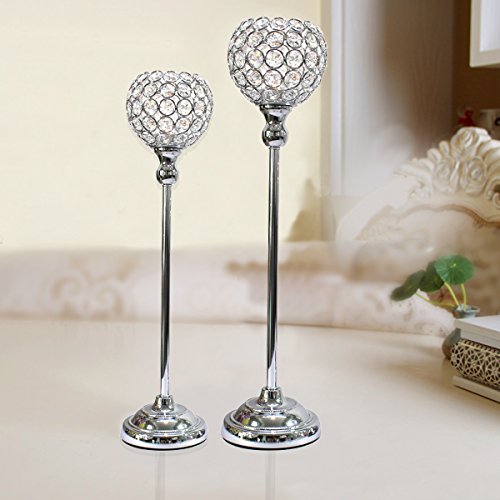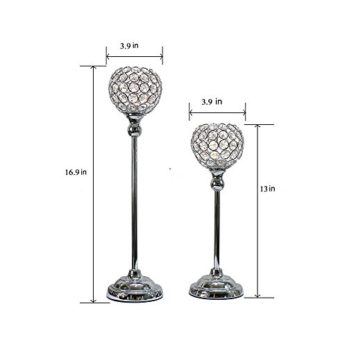 Product Description Specifications: - Material: Plated Metal Pillars with Bowl Crystal - Net Weight: 3.0lb -Color: Silver Package List: - Set of 2 pcs Candle holders(mediumsmall) (Need to be installed as the steps) - Add sparkle and luster to any table setting or use as extraordinary centerpieces 0