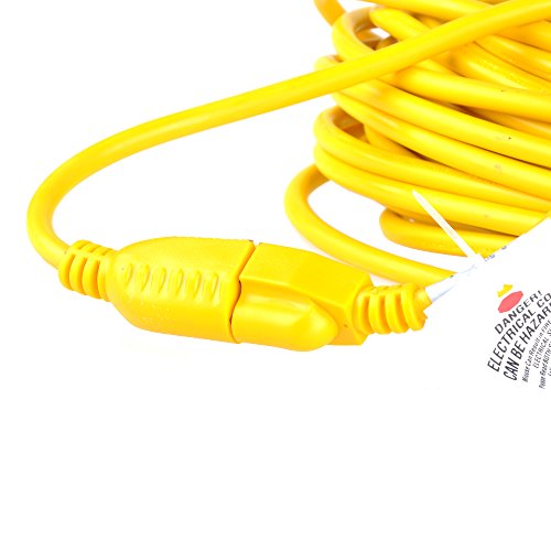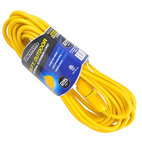 Epicord 16/3 Vinyl Outdoor Extension Cord 3 Conductor SJTW Outdoor Extension Cords, Yellow (25FT)