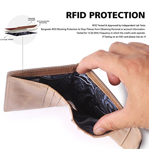 Binding : Apparel Product Description Brand: Borgasets Style: Women Compact Wallet Feature: Pants Pocket Wallet RFID Blocking Material: Genuine Leather Big Brand Enjoyment Borgasets wallet is extremely well made and this compact wallet for women will give you a big brand enjoyment. Borgasets wallet is made of 100% genuine leather, soft and comfortable. The enjoyment of high-end and need not spend too much money. Our wallets are European style,full leather cover to ensure that the finished products soft touch. Notes: Hardware to be waterproof Leather anti-pressure, anti-sun, scratch, moisture Contact with chemicals is prohibited Leather special oil for maintenance on a regular basis Compact Borgasets rfid blocking wallet compact yet small enough to put into your coat,pants pocket or small crossbody purse.Besides, there are many colors to choose. Details Show: 8 credit card slots 1 full-length currency pockets RFID Wallet RFID Technology Protecting Your Privacy We know that many credit cards, licenses, ID cards, transit cards and passports come pre-loaded with Radio Frequency Identification (RFID) chips which offer convenient contactless scanning and information sharing - at the cost, however, of security and privacy. RFID blocking material in Borgasets's wallet, make your money and identity safe. Holds all your essentials Let simple more stylish.Plenty of room in this wallet to easily hold all your essentials It is small enough to put in your pocket. All humanized design principle, creates the graceful content of life. What You Get: high quality genuine leather simple Environmental protection packing superb craftmanship = an inexpensive and yet high quality womens Slim card wallet; our worry-free 365day warranty and friendly customer service 0