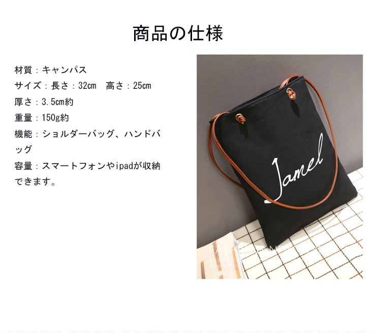 商品説明:◆伸縮性:有り◆厚さ:普通◆素材:キャンパス、ポリエステル◆バッグのサイズ:長さ:25cm約 高さ:32cm約 厚さ:3.5cm約◆色:写真通り◆機能:トートバッグ、ハンドバッグ、ショルダーバッグ◆重量:200g約◆商品内容:1xバッグ特徴:【軽量、携帯便利】バッグが、軽量で、携帯便利です。出掛けに最適!!大きいサイズのトートバッグです。たくさんの商品が収納できます。旅行や出かけに最適です。普段のお出掛けで入りきらない物を持ち運ぶサブバックとして日々の日常生活で重宝するアイテムです。【ファッションなデザイン】欧米風なファッションのバッグなので、通勤や通学にも適用します!!【収納力あり】内側にポケットがあるので、機能的で収納力も抜群です。素材?作りもしっかりしているので、お出掛けはもちろん、通勤?通学、お買い物、マザーズバック、サブバッグとしても幅広くご利用頂けます。