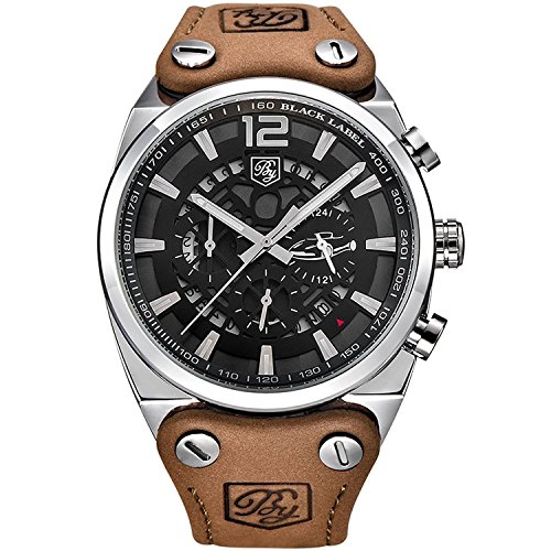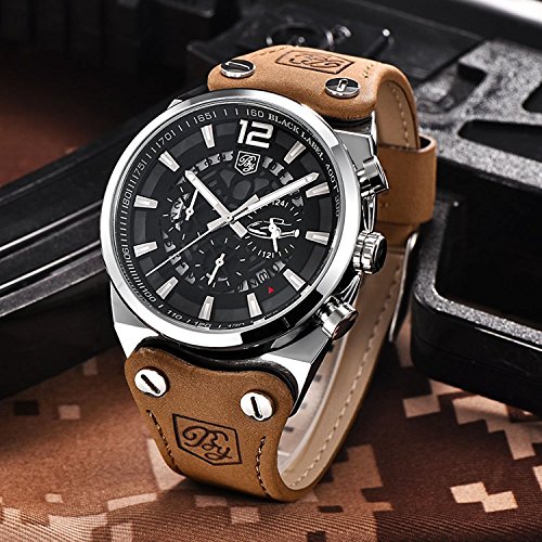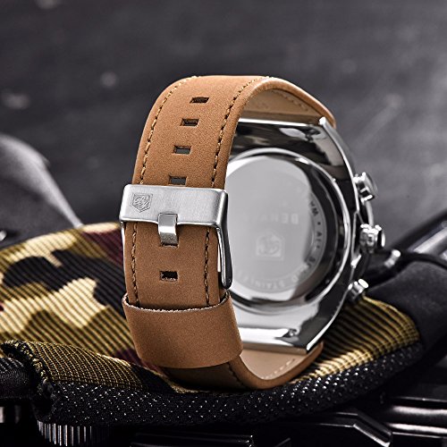 WATCH MATERIAL: High quality Men's Quartz Military Outdoor brown Genuine Leather Strap with Pin Buckle, Precise Japan quartz movement.
