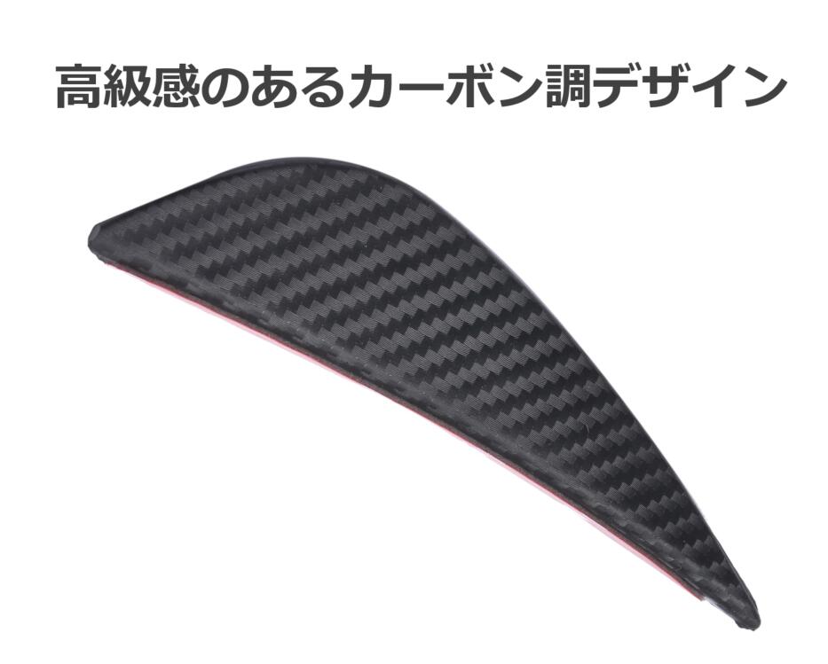 ・エアロフィンタイプ カーボン調のデザインなので貼り付けだけでワンポイントのスタイリッシュなイメージを演出できます。 流線形のデザインでスポーティーでなおかつ愛車をキズ衝撃から守り、車の保護にも使えるアイテムです。