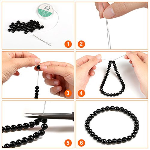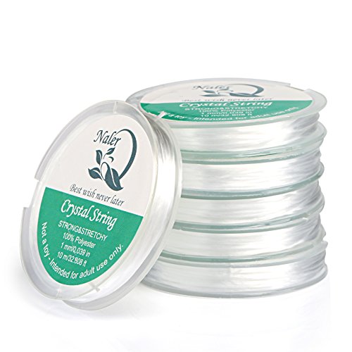 Naler 1mm Stretch Jewelry Cord Elastic Crystal String Cord 10 Meters with 1pc Collapsible Eye Needle for Jewelry Making, set of 6 - Clear White