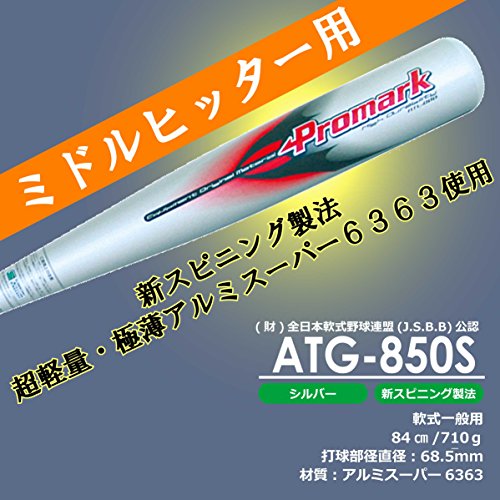 원본상품명: Promark(プロマ?ク) Promark プロマ?ク J.S.B.B公認 金?製バット 軟式一般 ミドルヒッタ?用 シルバ? ATG-850S
