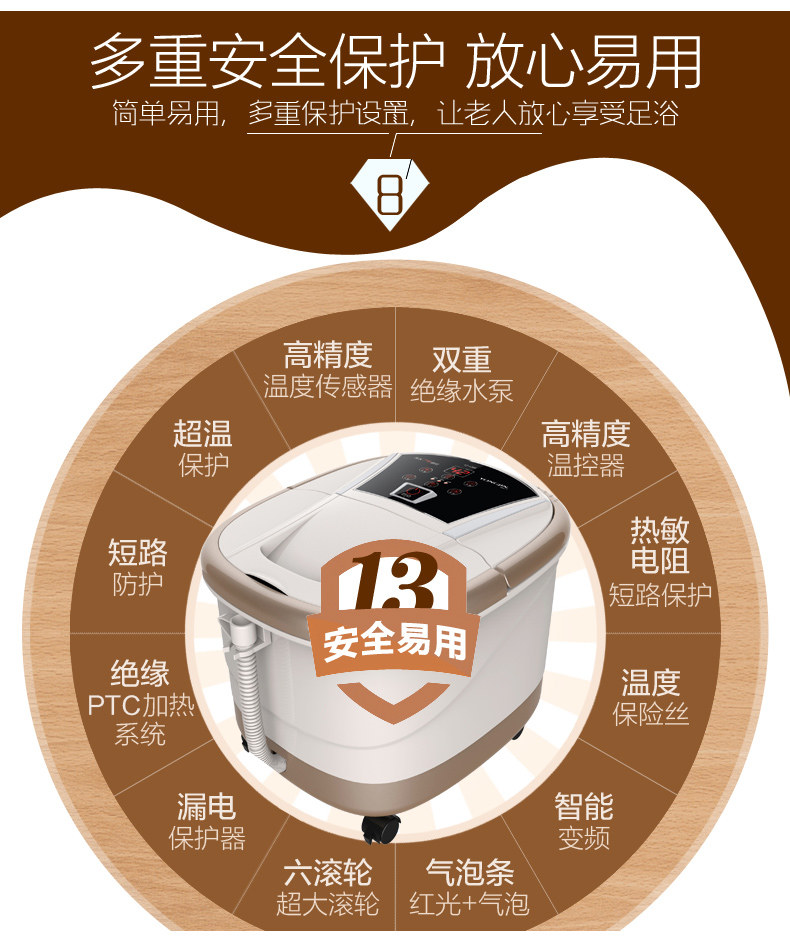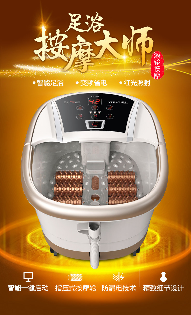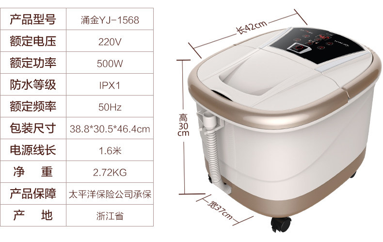 Product parameters: Product Name: Yongjin YJ-1568 Heating: PTC Heaters Is there a POST: NO Smart type: Ali Ash Foot Brand: Yongjin Model: YJ-1568 Color Category: White Beige Function: Thermostat to adjust the timing LCD infrared sterilization Water level: 18-20CM Drainage patterns: the next row Are belt kit device: Yes Whether with a waterproof cover device: Is Is there a handle device: Yes Whether with moving rollers: Yes Power: 800W or less Style: Siamese structure
