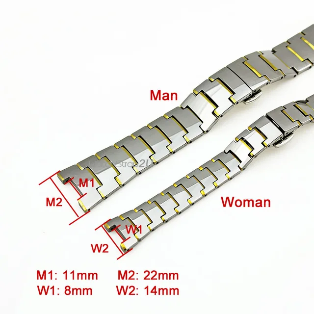 22 미리메터/14 미리메터 골드/블랙/골드/적철광 텅스텐 스틸 시계 밴드 팔찌 스트랩 푸시 버튼 디플로 버클 노치 엔드