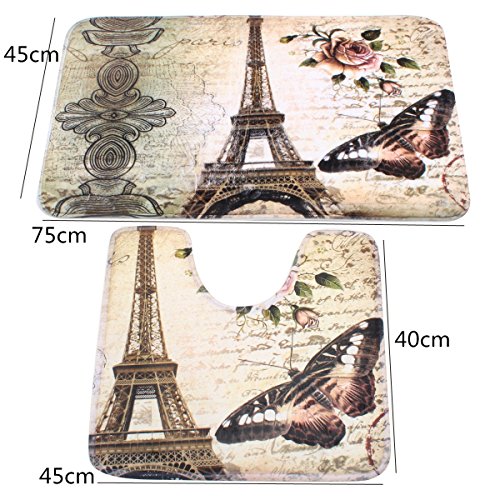 Rug Mat Carpet Sets, Tezoo Paris Eiffel Tower Home Bathroom Contour Rugs Combo, Set of 2 Soft Non Slip Bath Shower Mat and U-shaped Toilet Floor Rug 17.7 x 29.5 inch; 15.7 x 17.7 inch