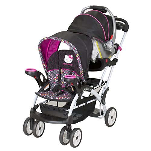 -. Binding : Baby Product -. Brand : Baby Trend -. Color : Pinwheel -. Department : baby-girls -. EAN : 0090014016968 -. Feature : Comfortably fits infant car seats in both the front and rear seating positions / Covered parent tray with 2-cup holders / One hand fold is fast and easy to use, 5-point child restraint safety harness / Foot Activated Brake / Children can sit in the front and rear seats of this stroller or stand -. Label : Baby Trend -. Manufacturer : Baby Trend -. Model : SS66944 -. MPN : SS66944 -. PackageQuantity : 1 -. PartNumber : SS66944 -. ProductGroup : Baby Product -. ProductTypeName : BABY_PRODUCT -. Publisher : Baby Trend -. ReleaseDate : 2015-07-07 -. Studio : Baby Trend -. Title : Baby Trend Hello Kitty Sit N Stand Ultra Stroller, Pinwheel -. UPC : 090014016968