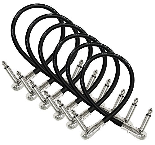 6 Units - Canare GS-6 - 12 Inch - Guitar Bass Effects Instrument, Patch Cable with ¼ Inch (6.35mm) Low-Profile, Right Angled Pancake type TS Connectors
