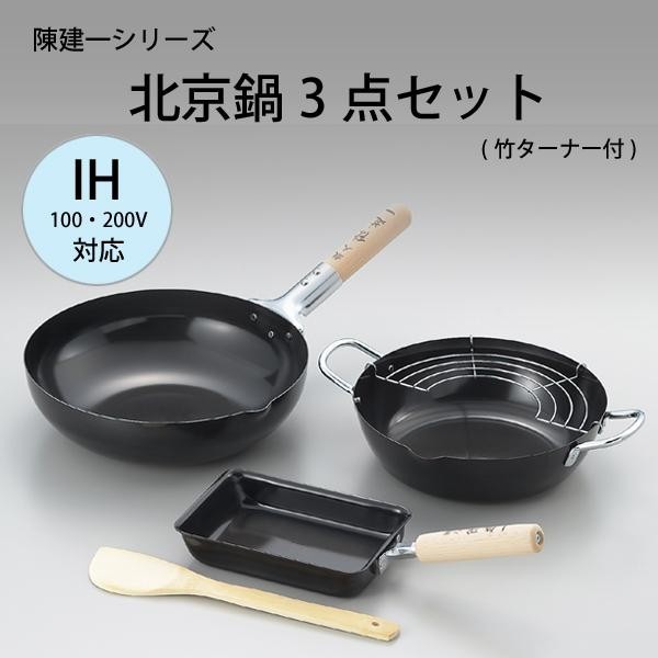 | セット内容 | 北京鍋(約φ278×460mm、980g、容量3900ml) 玉子焼(約337×135×90mm、焼き面サイズ120×160mm、570g、容量700ml) 天ぷら鍋24cm(約φ250×330×70mm、820g、容量1700ml) 木ベラ(全長約305mm) |