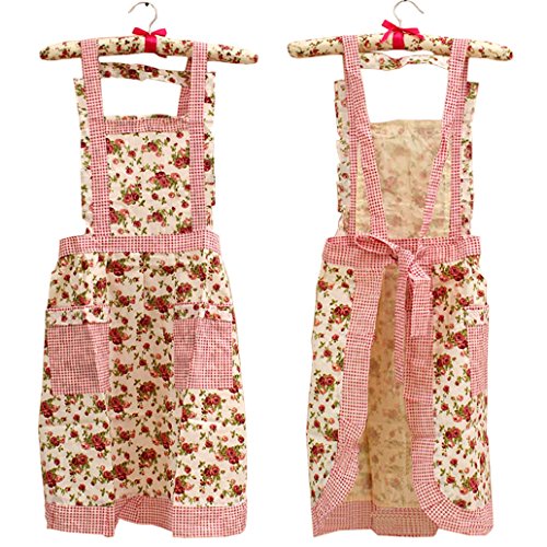 Hyzrz Stylish Flower Pattern Women's Fashion Floral Cotton Chef Cooking Cook Apron Bib with Pockets 3#