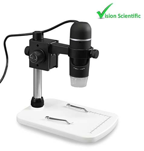 Vision Scientific USB Digital Microscope with 5MP Image Sensor, 300x Magnification, 8 LED Illumination with Intensity Control, Pillar Table Stand, AVI/JPEG/BMP, Windows/Mac Compatible