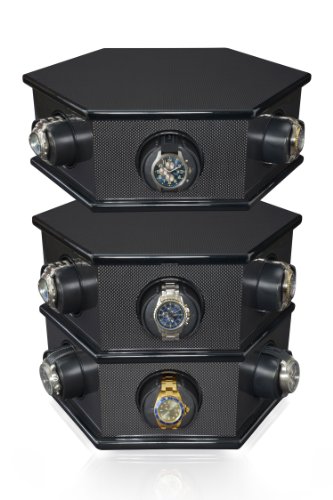 -. Feature : 6 winders each with individual battery power, and programing switches / Rotorwind is programmable in either 10 minute cycles with an estimated 900-950 Turns-Per-Day (TPD) or 15 minute cycles with an estimated 750 TPD / Stackable up to 4 high = 24 winders needing only 16 inches of depth, great for cabinets, safes and shelving / Dimensions for One CAROLO 6 Carousel (inches): 6.25H x 15.0 W x 13.5D, Weight 15 lbs / MADE IN THE USA, with US ROTORWIND movement, Case is fabricated with Carbon Fiber Panels