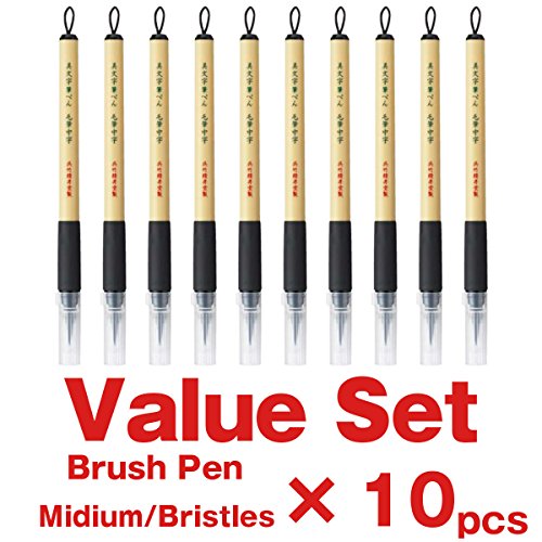 -. Title : Kuretake Bimoji Brush Pen, Midium/Bristles, Value Set of 10 with Ecology Sticky Notes