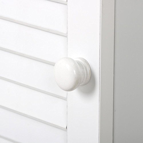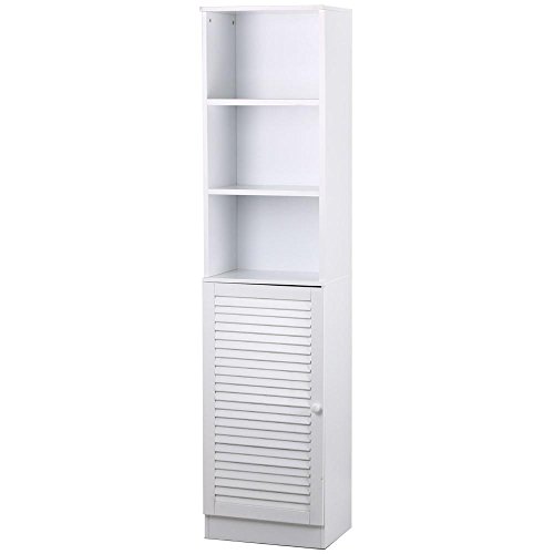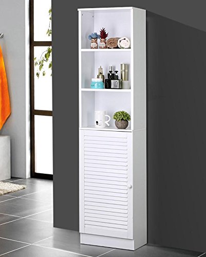 Features: Three top open shelves for good ventilation Widely use: suitable for domestic and hotel uses Louvered door adds a sense of elegance to any decor Assembly required with assembly instruction enclosed Sturdy and durable wooden construction in white finish Ideal for storing towels and other bath accessories on 5 shelves Provides large storage capacity with this tall space saving cabinet