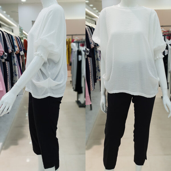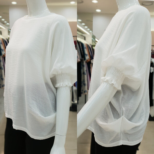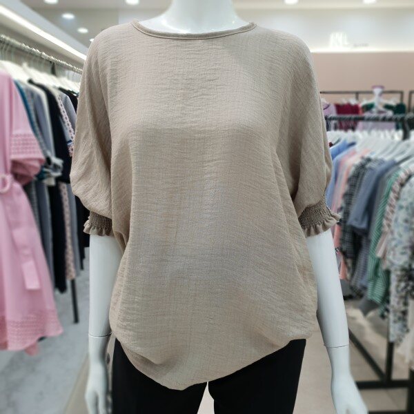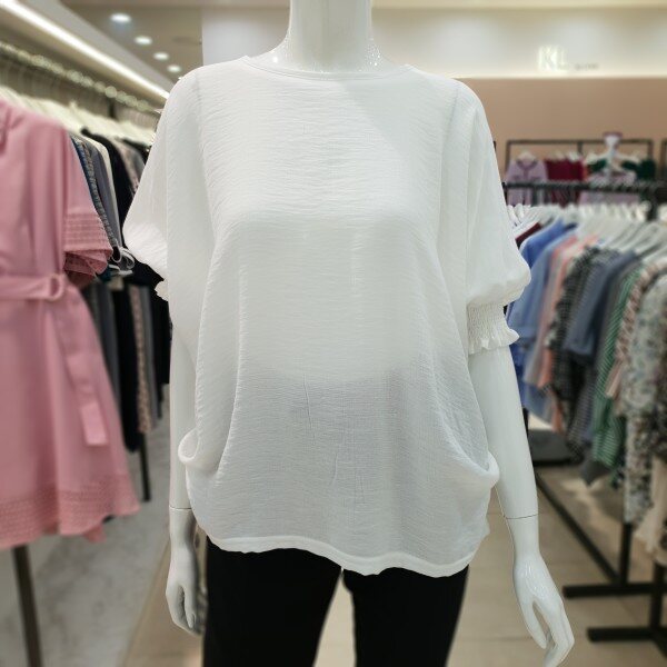 소매셔링과 자연스럽게 잡히는 허리주름으로 군살커버에 좋은 프리사이즈 티셔츠 입니다 가볍고 시원한 소재감으로 편안하게 착용하시기 좋아요