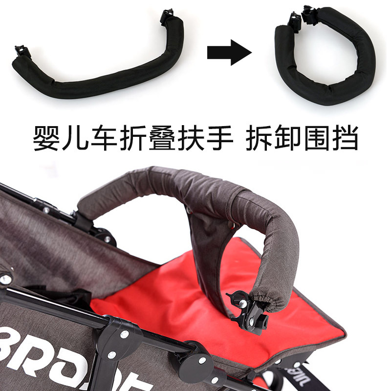 16管婴儿车伞车通用前扶手宝宝护栏,可拆装,可折叠收车,外侧为黑色牛津布,两侧卡扣为尼龙料,高强度且具有弹性,超强承重,收车无需拆卸。