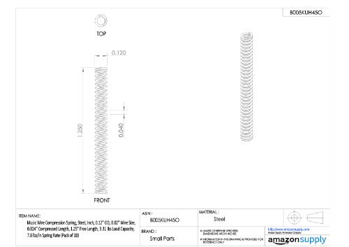 Music Wire Compression Spring, Steel, Inch, 0.12" OD, 0.02" Wire Size, 0.176" Compressed Length, 0.25" Free Length, 3.31 lbs Load Capacity, 44.8 lbs/in Spring Rate (Pack of 10)
