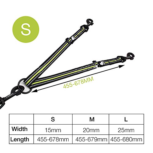 Products Features 1. Walk to two dogs with one double dog leash. Double dog leash for big dogs and small dogs, or both! No point in buying a dog retractable leash if you have two dogs, just buy one double dog leash. 2.Adjustable 3M reflective webbing Comes with extra strength 3M reflective webbing and adjustable leash parts for making walking two dogs easy and safe. 3.Stainless steel O-ring Tangle resistant design with a strong Stainless steel??O-ring and Zinc-alloy hooks makes it easy to keep dogs on leash.The tensile strength of stainless steel O-ring is up to 8000 N. SIZE INFORMATION Size?????????????????Width?????????????????????Length S ?????????????1.5 cm/0.6in ???????33-50 cm/13-19.7in M??????????????2.0 cm/0.8in ???????40-60 cm/16-23.6in L ??????????????2.5 cm/1.0in ???????45-68 cm/18-26.7in 0 |