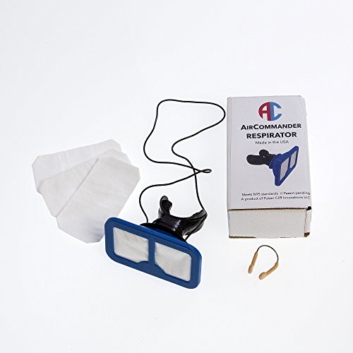 -. Binding : Misc. -. Brand : AirCommander -. Color : Royal Blue -. EAN : 0764890118787 -. Feature : Non-fogging, perfect to be used with eye glasses and beards and is deal for warm or humid areas / Reusable with affordable replacement filters, 4 included / Scuba style mouth piece provides a comfortable 100% seal eliminating all dust contaminates / Easy to put in and take out during breaks / Includes neck lanyard and nose seal -. Label : Putzer Cliff Innovations LLC -. Manufacturer : Putzer Cliff Innovations LLC -. MPN : 800-00 -. PartNumber : 800-00 -. ProductGroup : Home Improvement -. ProductTypeName : TOOLS -. Publisher : Putzer Cliff Innovations LLC -. Studio : Putzer Cliff Innovations LLC -. Title : Air Commander Fog Free, Hassle Free Dust Mask (Meets N95 Testing) Included 4 Replacement Filters -. UPC : 764890118787