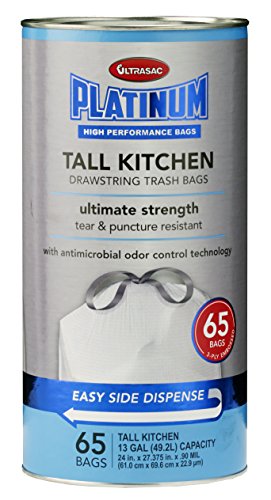 Ultrasac Platinum ULP 013009065 – Single Kitchen Drawstring Trash Bags, 13 gal, Tall (Pack of 65)