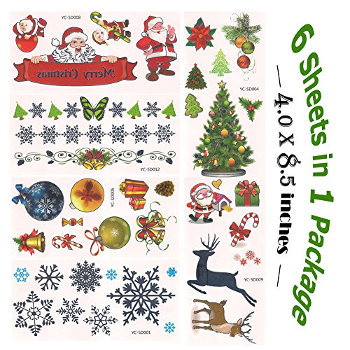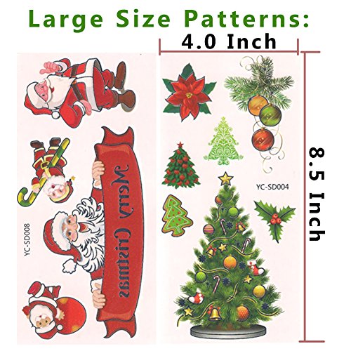 XStrong Large Pattern Festival Tattoos - Waterproof Body Transfer Temporary Tattoo Stickers - 6 Sheets, 4 x 8.5 In - 40 Designs Santa, Tree, Snowflake, Deer, as...