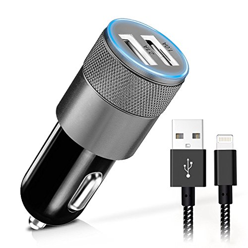 Compatibility: iPhone 7/ 7 Plus iPhone 6/6S iPhone 6/6S Plus iPhone 5/5S/SE iPhone 5C iPad Air / Air 2, iPad mini / mini 2 / mini 3, iPad (4th generation),iPod nano (7th generation) iPod touch (5th generation) Android Cable devices Construction: Multi-annular design of appearance allow you pull out the Charger from car power outlet more easy Intelligent circuit design protects against short circuiting,over- heating,over -current,and over -charging Made from fire proof materials for your safety Not interferes with Radio,Bluetooth or Wi-Fi Signals Specification: -Input: DC 12-24V -Output: DC 5V 3.1A -1x 1.0A USB Port and 1x 2.1A USB Port Package Includes: -1 USB Car Charger -1 Instruction Manual -1 Lightning Cable Warranty Policy: Every sale includes an 12-month, worry-free guarantee to prove the importance we set on quality. If you have any quetions, don't hesitate to contact us! 0