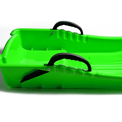 Description? This great snow sled will have you speeding down the hill, piste or dune. Great value and loads of fun on snow and also some have used on sand dunes! Perfect for any hill, the Snow Sled is ready for fresh powder! It features 2 handles for a great grip, while the attached tow rope ensures easy pulling. Features: 1.Plastic sled accommodates one or two people 2.Can also be used to haul gear 3.2 handles hole 4.Attached tow rope 5.Integrated brake handle to keep speeds safe Specification? 1.Material: HDPE 2.size: 80*40*13.5CM/31.5*15.7*5.3 inch 3.Weight: 1000g 4.Color?green Package include: 1X Plastic snow Sled 0 |