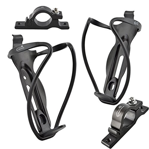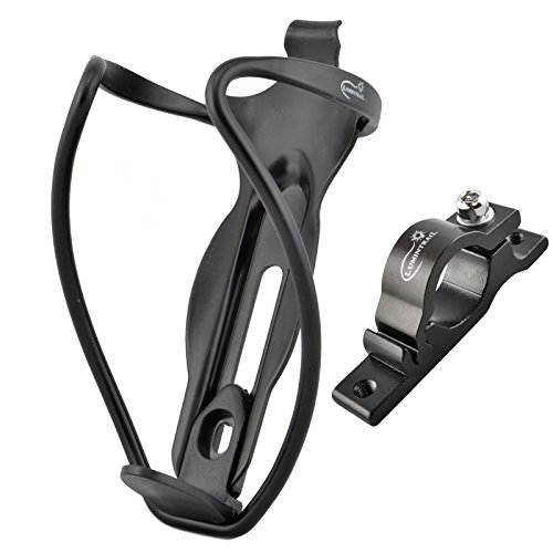 Stay hydrated wherever your ride takes you with this sturdy Lumintrail water bottle cage. Made of durable Aluminum Alloy this holder is super lightweight weighing only 2.2 oz and features a wrap around arm design to hold your bottle firmly in place while you ride. Made to fit water bottles approximately 2.8" in diameter. The included handlebar mount bracket provides more convenient access to your water bottle than the traditional seat or down tube mounts. The easy to install bracket uses one hex screw to attach to your handlebars and comes with 2 additional screws for mounting your cage. Perfect for bikes that don't have mounting holes or for anyone wanting to add an extra water bottle. Mount fits standard size handlebars measuring 22.2mm or 7/8" Specifications: - Material: Aluminum Alloy