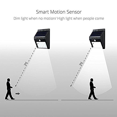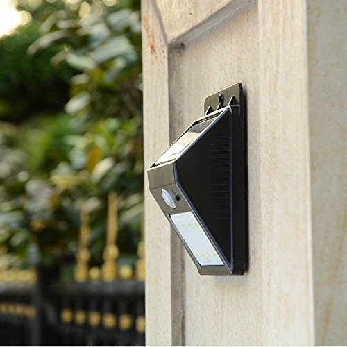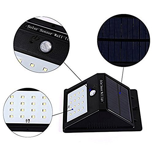 16 LED Lights outdoor waterproof wireless solar powered motion sensor wall brighter light. No wiring necessary,solar energy powered. It using for Canadian Solar Inc monocrystalline silicon solar panel power then have improvement 20% solar photovoltaic conversion efficiency than similar products, then the wall light is super bright than other LED solar motion sensor garden light and much longer useful life.