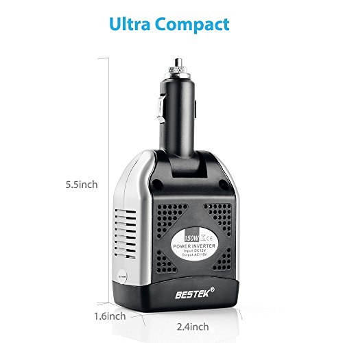 BESTEK Advantage: Amazon's #1 power inverter brand. Provides 75 watts continuous DC to AC power and 200 watts of instantaneous power with 1 AC outlets and 2 USB charging ports