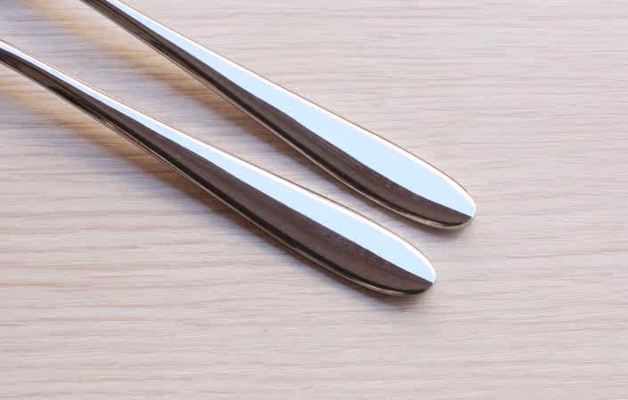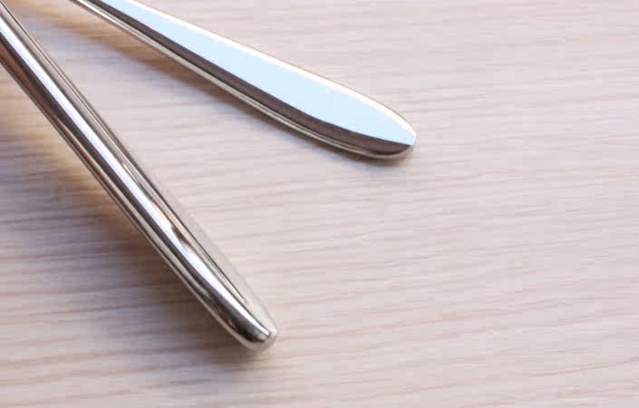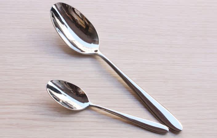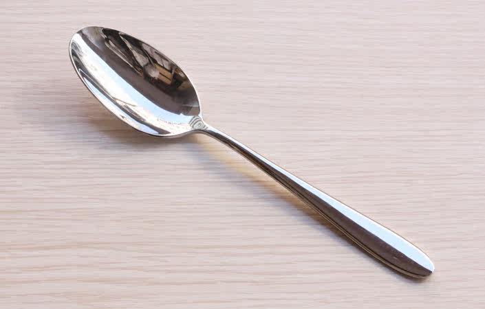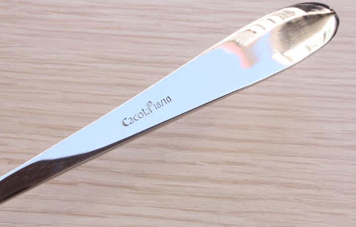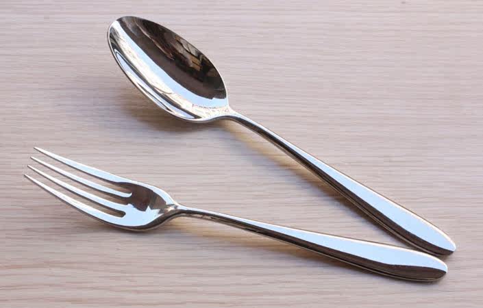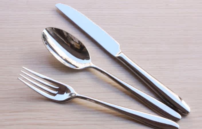 |  不锈钢 18-10材质,亮光处理 咖啡匙长138mm,勺宽28mm,重量28g, 主餐更长205mm,勺宽40mm,重量70g, 主餐刀长240mm,柄厚7mm,重量110g,400钢,有磁 主餐叉长205mm,柄厚3mm,重量50g。手工测量,原单带钢印LOGO  有钢印LOGO,无吊牌, 晶莹剔透的亮光处理,PP胶袋包装,无彩盒及吊卡,主餐刀不带LOGO哦。   一体成型,坚固结实,做工精良,经久耐用。          仓储及运输过种中,产品表面可能会有轻微磨损,请知悉。 关于18-10不锈钢: —————————————————————————— 18-10不锈钢,18"是指铬的比例,"10"指镍含量, 这样能在钢的表面形成一种抗腐蚀的氧化膜,而且表面光洁度高、硬度好。 18-8不锈钢:铁+18%铬+8%镍,可以抗化学性的氧化,这种不锈钢在jis代号中为304号,因此又称为304不锈钢; 18-10不锈钢:但空气中的化学成分愈来愈多,有些污染较严重的地方连304都会有生锈的情况;所以有的高级用品会用10%的镍来制作,以使其更耐用更抗蚀,这种不锈钢称为18-10不锈钢。在有的餐具说明上有类似“采用18-10最先进医用不锈钢材质”的说法。 |