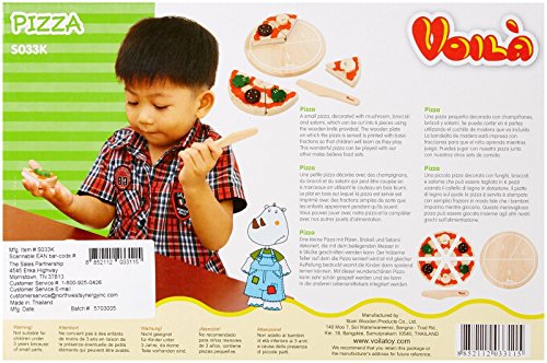 Studio : Northwest Synergy, Inc. Publisher : Northwest Synergy, Inc. Binding : Toy Product Description A small pizza, decorated with Mushroom, broccoli and salami, which can be cut into 6 pieces using the wooden knife provided. The wooden plate on which the pizza is served is printed with basic fractions so that children will learn as they play. This wonderful pizza can be played with our other make-believe food sets. 0