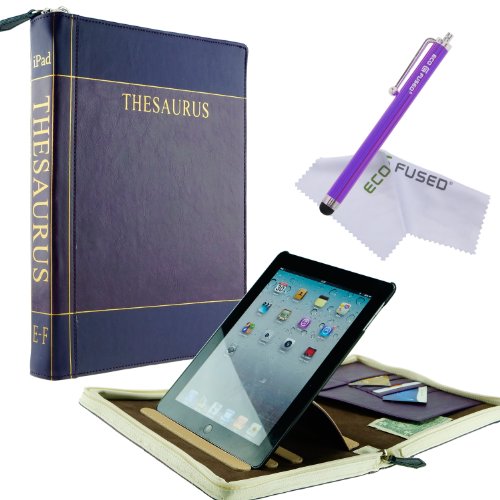 Eco-Fused Classic Book Style Faux Leather Rotating Cover for iPad 4, 3, 2 including - Faux Leather Rotating Cover - Stylus Pen - Microfiber Cleaning Cloth - Style and Protection for Your Device