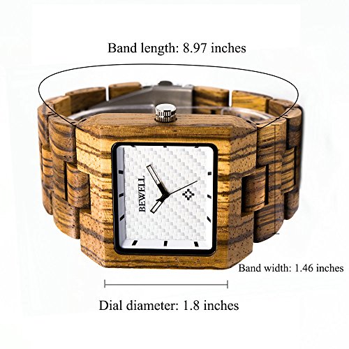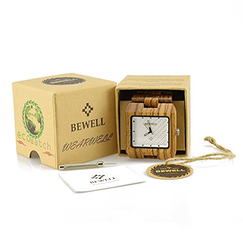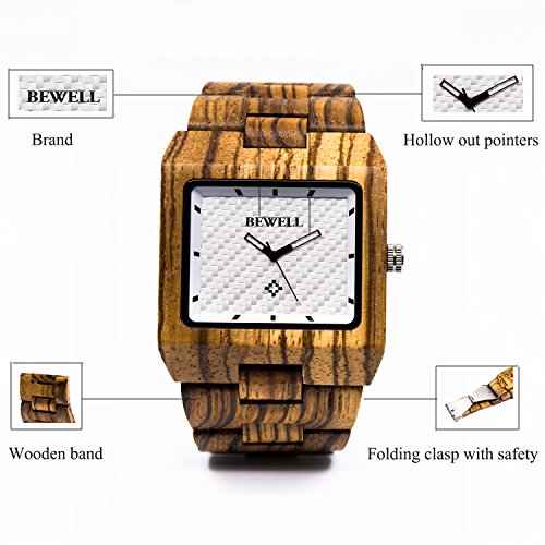 -. Title : Bewell Rectangle Men Wood Watches Analog Quartz White Dial Brown Zebra Wooden Wristwatch W016A
