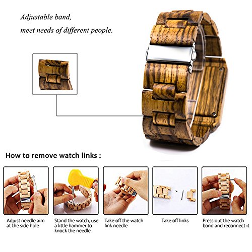 -. Feature : 100% Natural Wood . Japanese Miyota Quartz Movement. Environmental Economical. Lightweight 29 g Comfortable On The Wrist. / Special Material and Color,Retro Style Which Is Unique and Cool, A Good Choose as A Gift / Note: Comes With the Watch Box,Don't strike or pull the watch too violent. Try NOT to get wet or soak in the water in daily life. You can keep it in a clean and dry box after you take it off / Easy to Adjust Watchband Yourself You Can Resize The Watchband to Fit Your Wrist .We Send Adjustment Tool in The Package For Free / Best Gift for Party,Festivals,such as Father's Day,Christmas,Thanksgiving Day etc