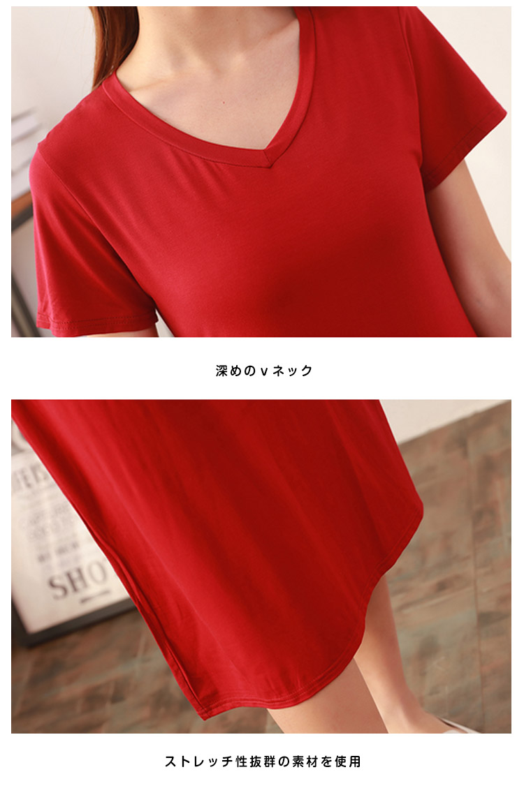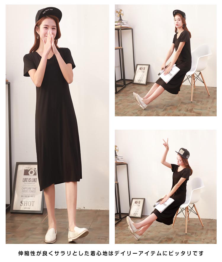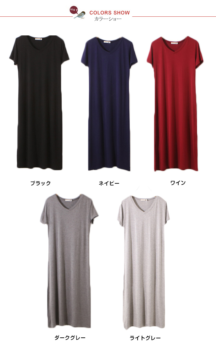 | 一枚は持っていたい、トレンドに左右されない半袖ワンピースです首元は開きすぎない綺麗なvネックで大人上品に着こなせます伸縮性が良くサラリとした着心地はデイリーアイテムにピッタリです涼しく軽く、暑い夏、ルームウェアに最適です | |