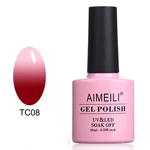 -. Binding : Misc. -. Brand : AIMEILI -. EAN : 0701851249708 -. Feature : 14-day high-gloss wear , On like polish, Wears like Gel, Off in minutes. Mirror shine finish. / No Nicks, Chips or Smudges. / Changes colour with temperature changes. No Nicks, Chips or Smudges / Requires drying under UV or LED Lamp. / Please note: Due to the lighting and screen setting, color may vary slightly from the picture. -. IsAdultProduct : 0 -. Label : AIMEILI -. Manufacturer : AIMEILI -. MPN : TC08 -. PackageQuantity : 1 -. PartNumber : TC08 -. ProductGroup : Beauty -. ProductTypeName : BEAUTY -. Publisher : AIMEILI -. Studio : AIMEILI -. Title : AIMEILI Soak Off UV LED Temperature Color Changing Chameleon Gel Nail Polish - Red Horizon (TC08) 10ml -. UPC : 701851249708