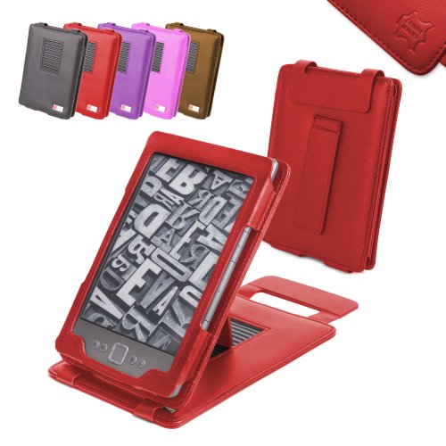 -. Feature : Soft genuine red leather outer gives tactile and aesthetic appeal and protects your Kindle whilst the PU Leather intererior adds strength and durability to the case / Cut outs for all controls, no need to remove your Kindle to use it, all buttons and connectors are exposed / Built in multi angle stand function allows you to read at your preferred angle without having to hold the device, ideal for the train, dining table or on your lap. / Based on our best selling Kindle case design, updated for the new Kindle4 (DOES NOT fit the TOUCH)