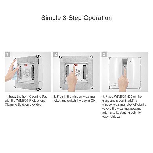 Thanks to its innovative fan technology, WINBOT 850 cleans framed or frameless windows, inside or outside. WINBOT 850 can even work its cleaning magic on frosted or filmed glass. WINBOT 850 is intelligent and simple to use with one-touch operation and automated "N" or "Z" cleaning paths based on window shape. WINBOT 850 uses a 4-stage cleaning process while the mechanical bumper protects window frames, and multiple sensors help it intelligently avoid edges and obstacles while leaving glass shining.