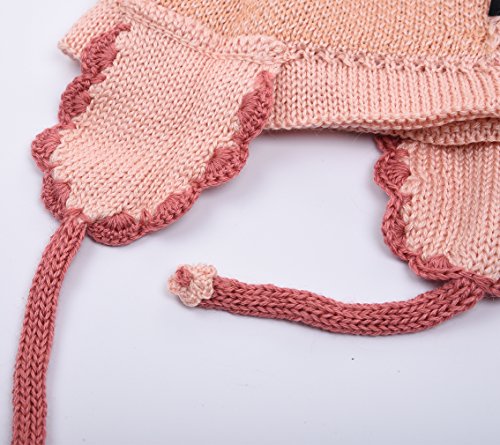 ?Features: -Made of 30% wool,70% acrylic material. -Soft and comfortable to wear:Keep your baby's head warm in whole years. -Soft breathable material,Two small ears at the top make it more lovely. -Suitable for 1-4 years kids, long lasting fit your growing baby will be able to wear this set for many outings to come. Hat circumference: 9-18 Months:Hat circumference 14.5-16 inch,suitable for baby of 9-18 Months, 2T/4T: Hat circumference 16.5-18 inch,suitable for baby of 2-4 Years. The age we proposed is average for baby,please be sure to choose according to the baby's head circumference.