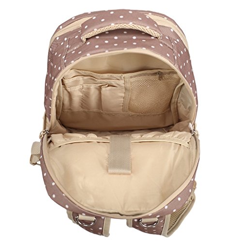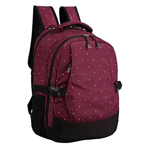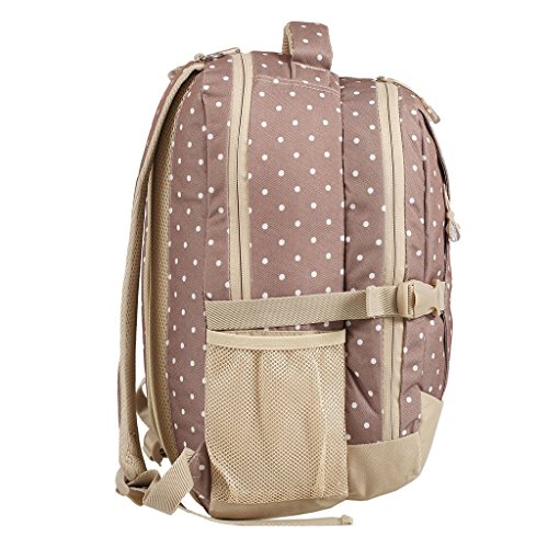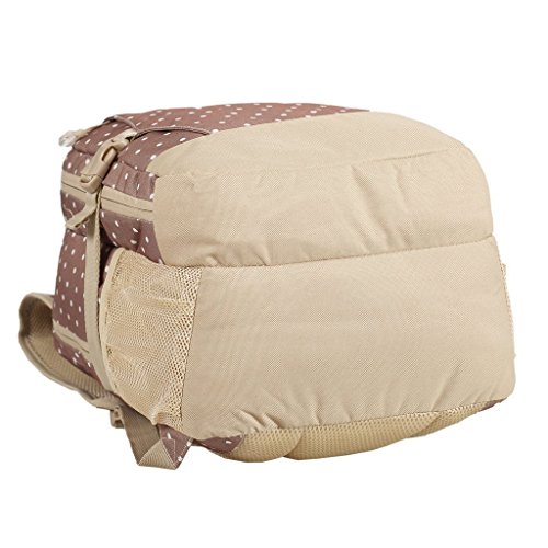Adjustable, cushioned shoulder straps and breathable air mesh panels on the backside balance out the weight of this backpack and provide comfortable carrying experience