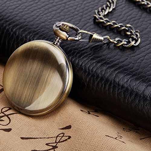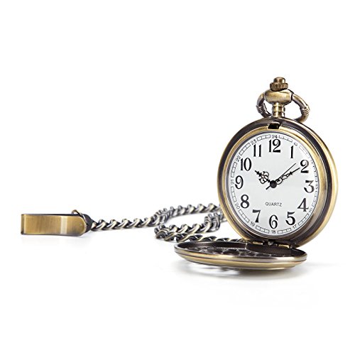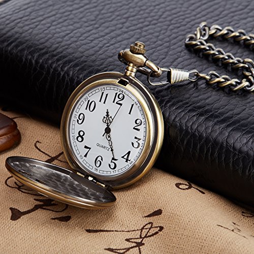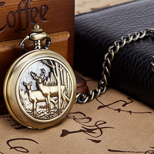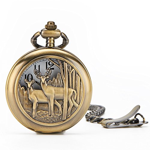 -. Title : Deer Pocket Watch Chain Quartz Movement Arabic Numerals Half Hunter + Box