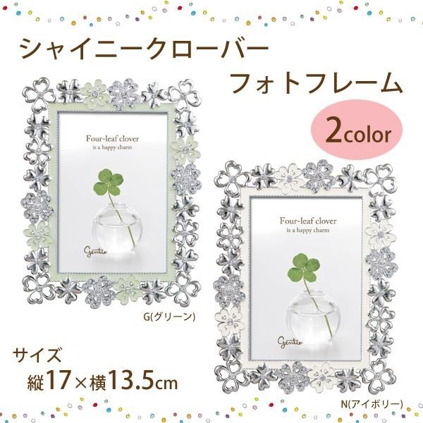 幸運を表すクローバーはプレゼントにもぴったりです。 製造国:中国 素材・材質:亜鉛合金、ガラス、エポキシ、ラインストーン 商品サイズ:縦17×横13.5cm 仕様:収納可能サイズ:サービス判(L判・1枚)スタンド付 ※サプライヤー直送品  ご注文後、当日~1営業日後の出荷となります【商品名】シャイニークローバーフォトフレーム G-4037 G(グリーン)