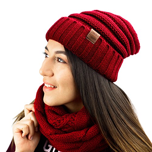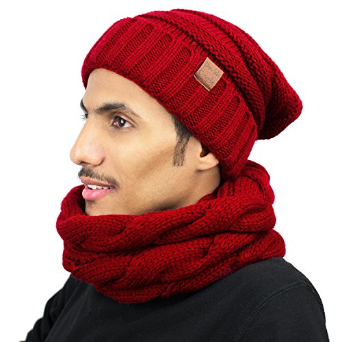 This scarf and beanie set will keep you warm during the chilly season. The scarf is knitted in a thick pattern for extra warmth and can be worn double looped or long. The beanie can be worn slouched down or as a traditional beanie and provides great coverage over the entire head and ears. The perfect accessories for winter.