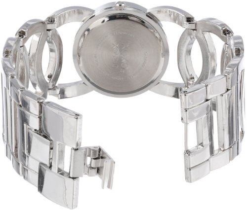 Silver-tone watch featuring round dial with four oversized markers and large open-circles link bracelet